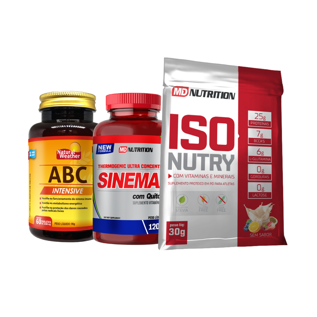 O ABC Intensive complementa o kit como um polivitamínico de alta complexidade, formulado com vitaminas, minerais, proteínas e carotenoides, oferecendo suporte nutricional amplo ao organismo em períodos de maior atenção à alimentação e à composição corporal.